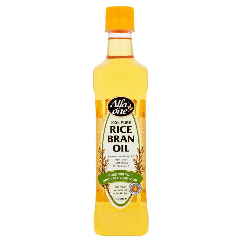 Alfa One Rice Bran Oil 500MlMake the healthier choiceAlfa One Rice Bran Oil is naturally light and clean tasting. It is a source of natural Vitamin E, which contributes to the protection of cells from oxidative stress. With a high smoke point (250ºC), it is ideal for all types of cooking, including baking, grilling and deep frying.Good for You Good for Your Food™Alfa One™ and Good For You Good For Your Food™ are Trademarks of Hansells Food Group Ltd.Plant sterolsLight flavourNo CholesterolThe most versatile oil in the kitchenContains 10000 PPM OryzanolSource of natural vitamin EGluten FreeSuitable for VegetariansPack size: 500MLSource of natural vitamin ENo Cholesterol