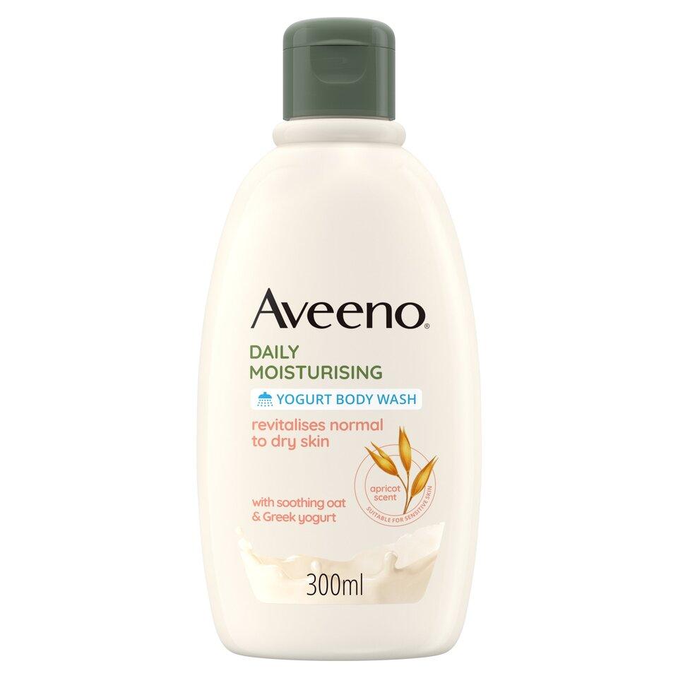 Aveeno Daily Moisturising Yogurt Body Wash Shower Gel 300mlHealthier-looking skin starts in the shower and Aveeno Daily Moisturising Yogurt Body Wash is here to prove it. Formulated with prebiotic oat and probiotic Greek yogurt, this body wash soothes the skin and helps preserve its natural moisture barrier. Not only does it cleanse the skin and keeps it feeling moisturised, velvety soft, and healthy-looking, but it also enriches your senses with a delicious smelling apricot and honey scent. Use this body wash daily and allow its unique 95% biodegradable formula to cleanse your skin without drying it. Aveeno Daily Moisturising Yogurt Body Wash revitalises normal to dry skin and is suitable for sensitive skin.Pack size: 300ML